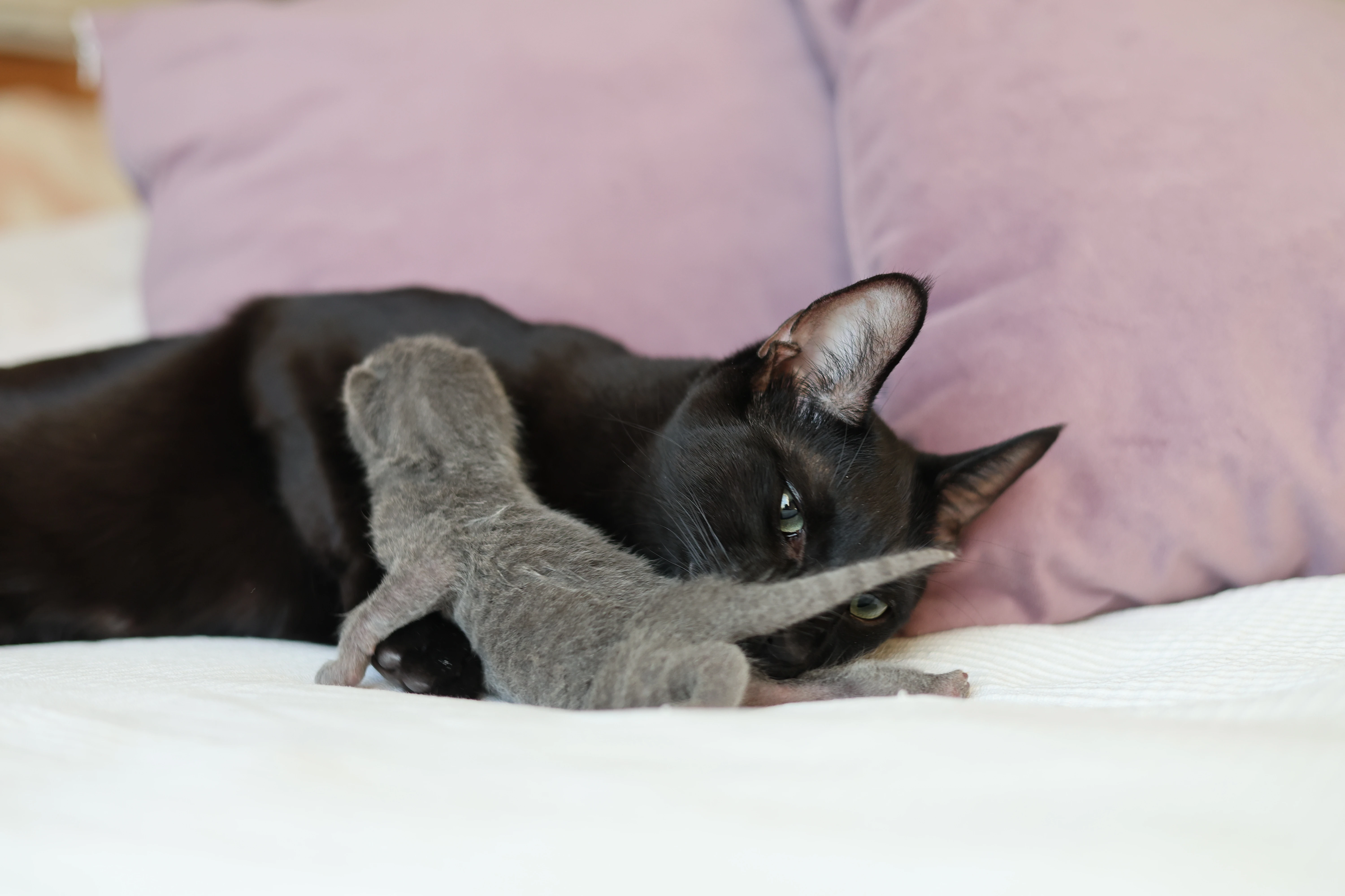 Могут ли две русские черные дать голубых котят? Ответ — да, если обе кошки гетерозиготны по разбавлению (Dd), то есть несут скрытый ген d. Вероятность рождения голубых котят (dd) составит 25%.